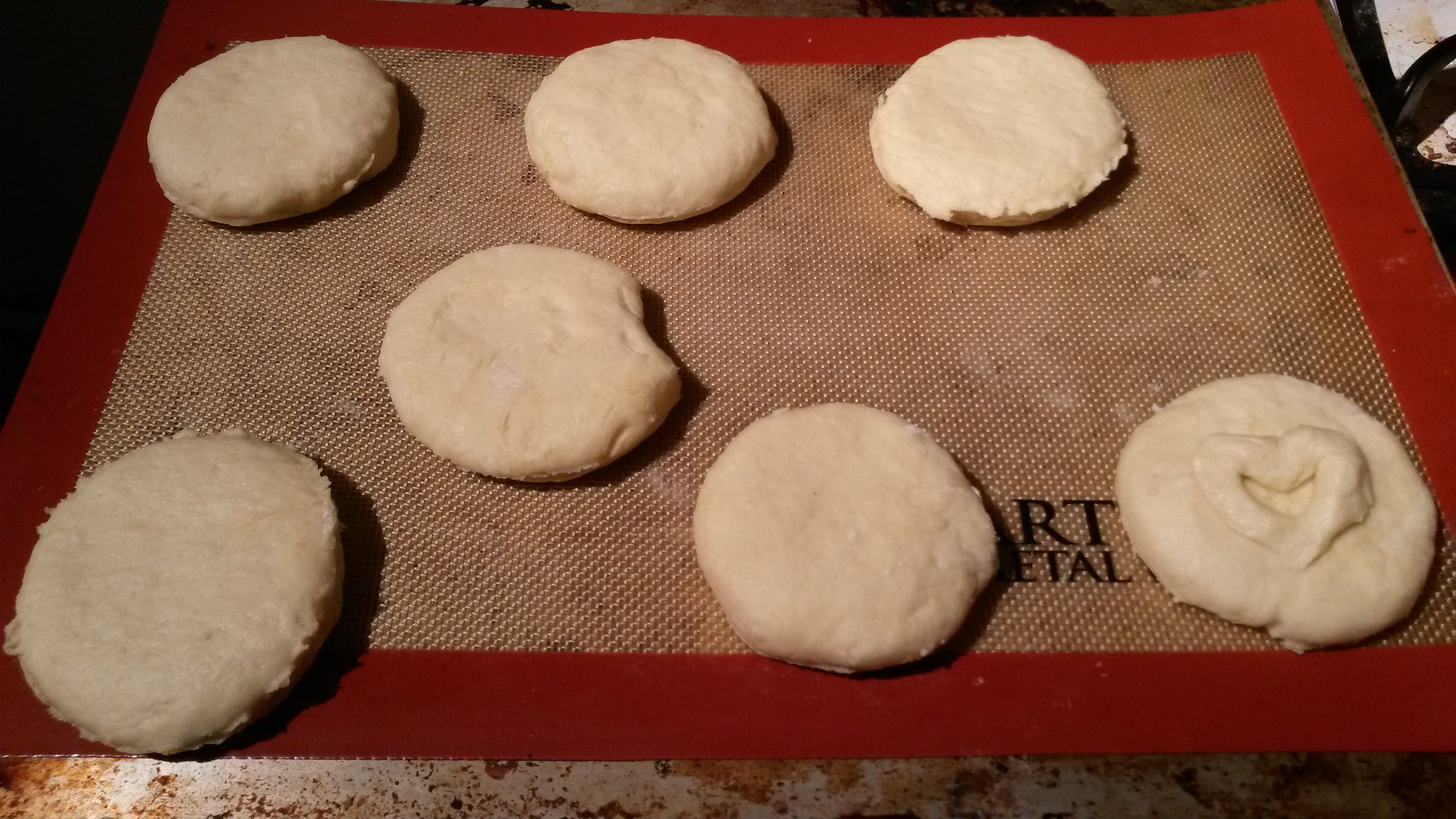 Place the biscuits at least an inch apart on an ungreased baking sheet. At this point some people brush the tops with milk, but that’s effort and it never really did anything for me, so let’s forget it.