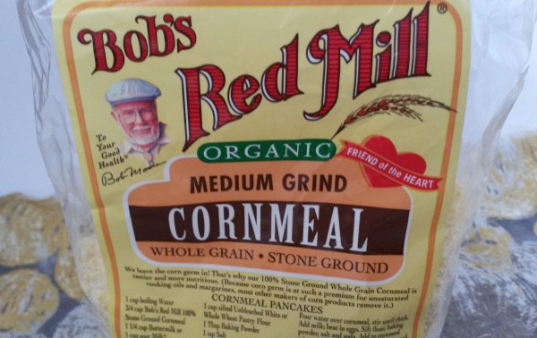 Now that I’ve insulted my source of cornmeal, it may be time to discuss its merits. My first encounter with this cornmeal was via the cornbread a friend had made. The texture was slightly gritty, in a good way, and I could see little yellow specks of cornmeal in the bread. She told me she used a medium grind cornmeal from Bob’s Red Mill. Being stone-ground, the corn’s hull and germ are left in, giving the cornmeal a heartier texture and cornier flavor. This makes it slightly healthier than the standard steel-ground cornmeal, which, as far as I’m concerned, means it balances out all the sugar.