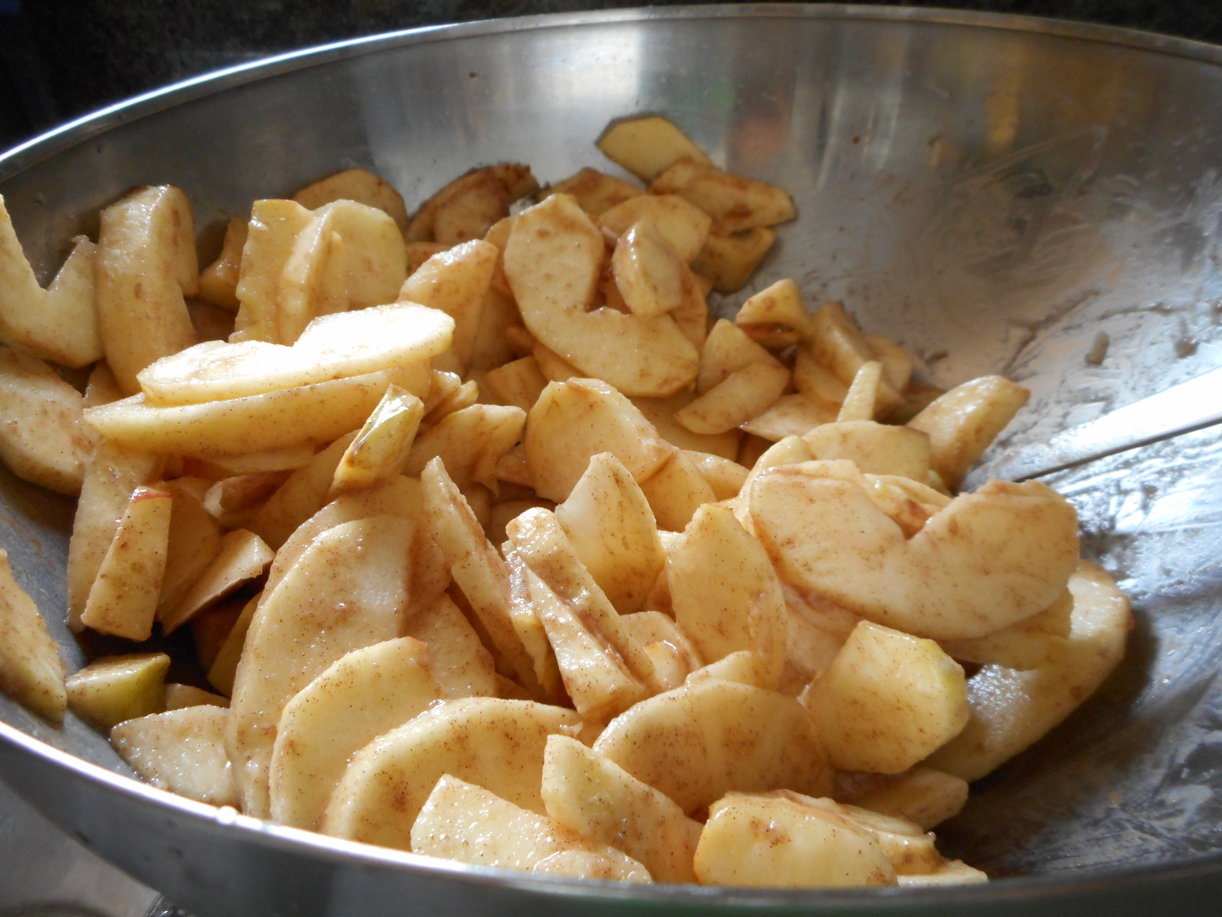 For the filling: Combine all the ingredients into a large bowl until the apple slices are fully coated. Put the filling mixture into the crust (it should be about 1-2 inches taller than the pie tin, as the slices will shrink in the oven).