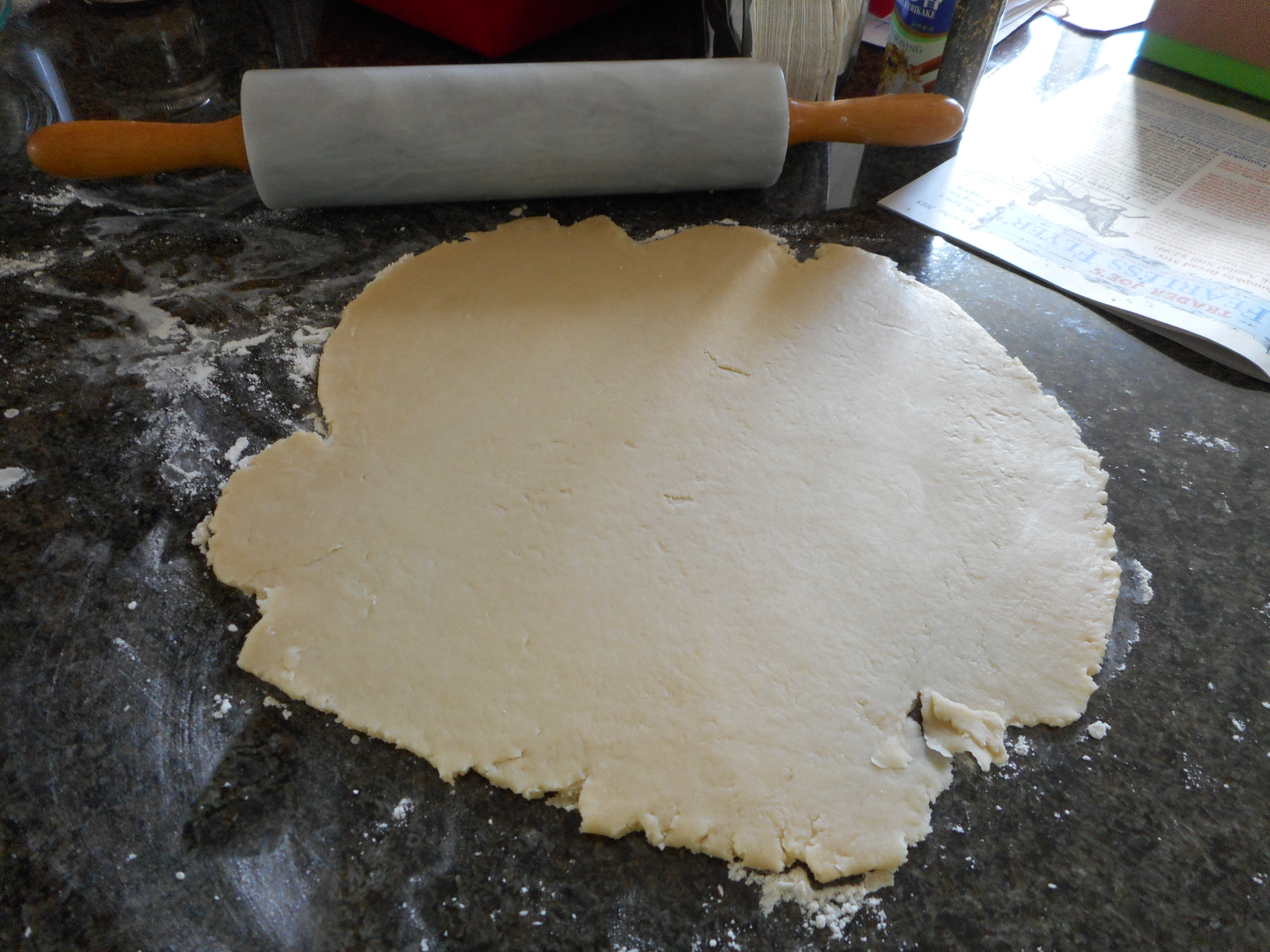 Roll the dough out on a floured surface until it is 12″ in diameter. Transfer it into a 9″ pie dish. Trim the overhang as needed and crimp the edges according to your level of fanciness.