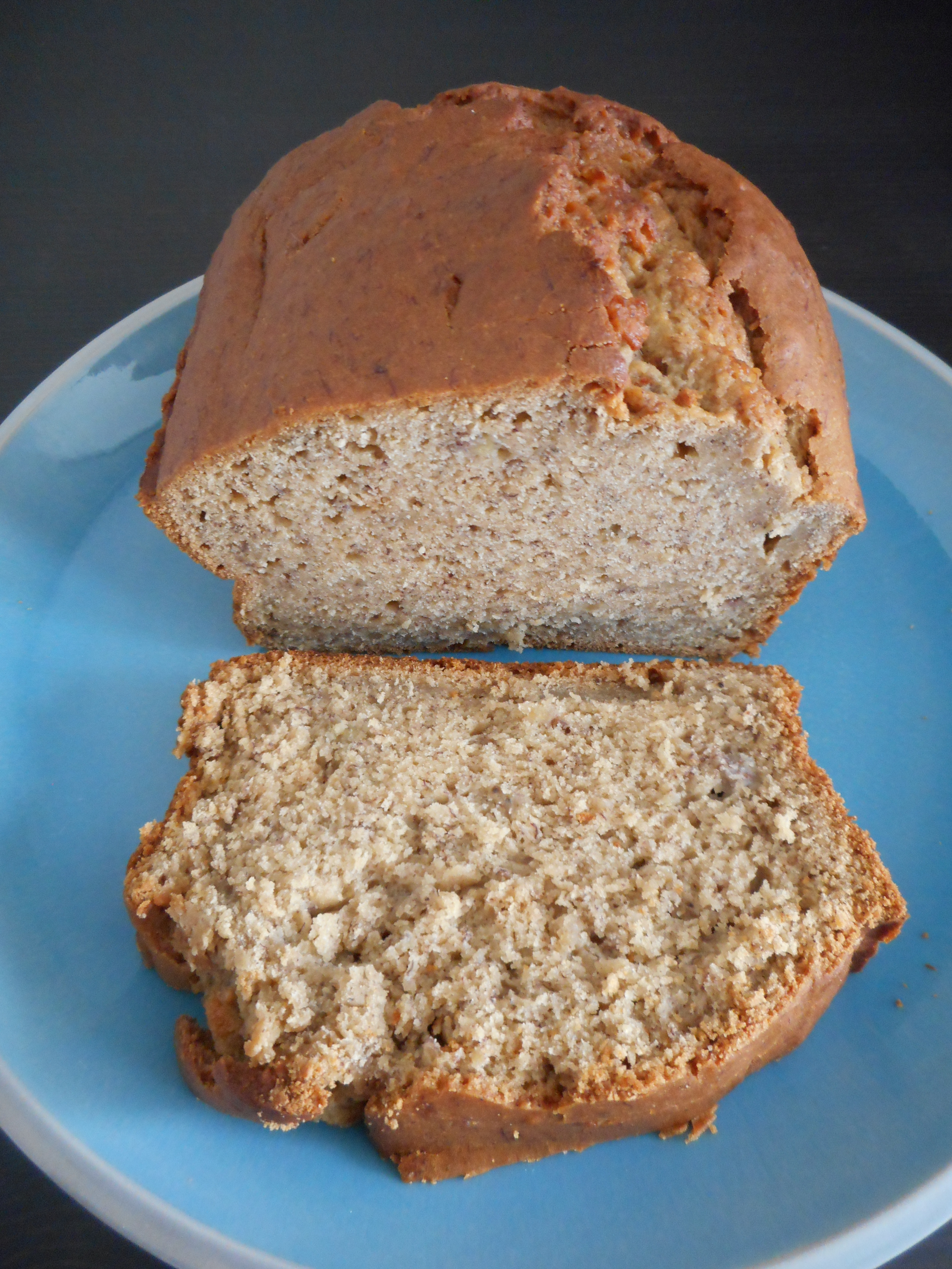 My first venture into low-fat banana bread started with this Low-Fat Oatmeal Banana Bread from Joy the Baker. I was looking for nothing more than good banana bread, period, and this seemed to fit the bill, low-fat or not. With egg whites, a cup of oats, and just a tablespoon of oil, it’s certainly healthier than the usual fare, but you can’t tell. All that comes through is the sweet banana flavor and the cinnamon spice. From then on I decided banana bread should always be this way and began using this recipe exclusively. I highly recommend it and I’d have used it this time if circumstance hadn’t sent me in another direction.
