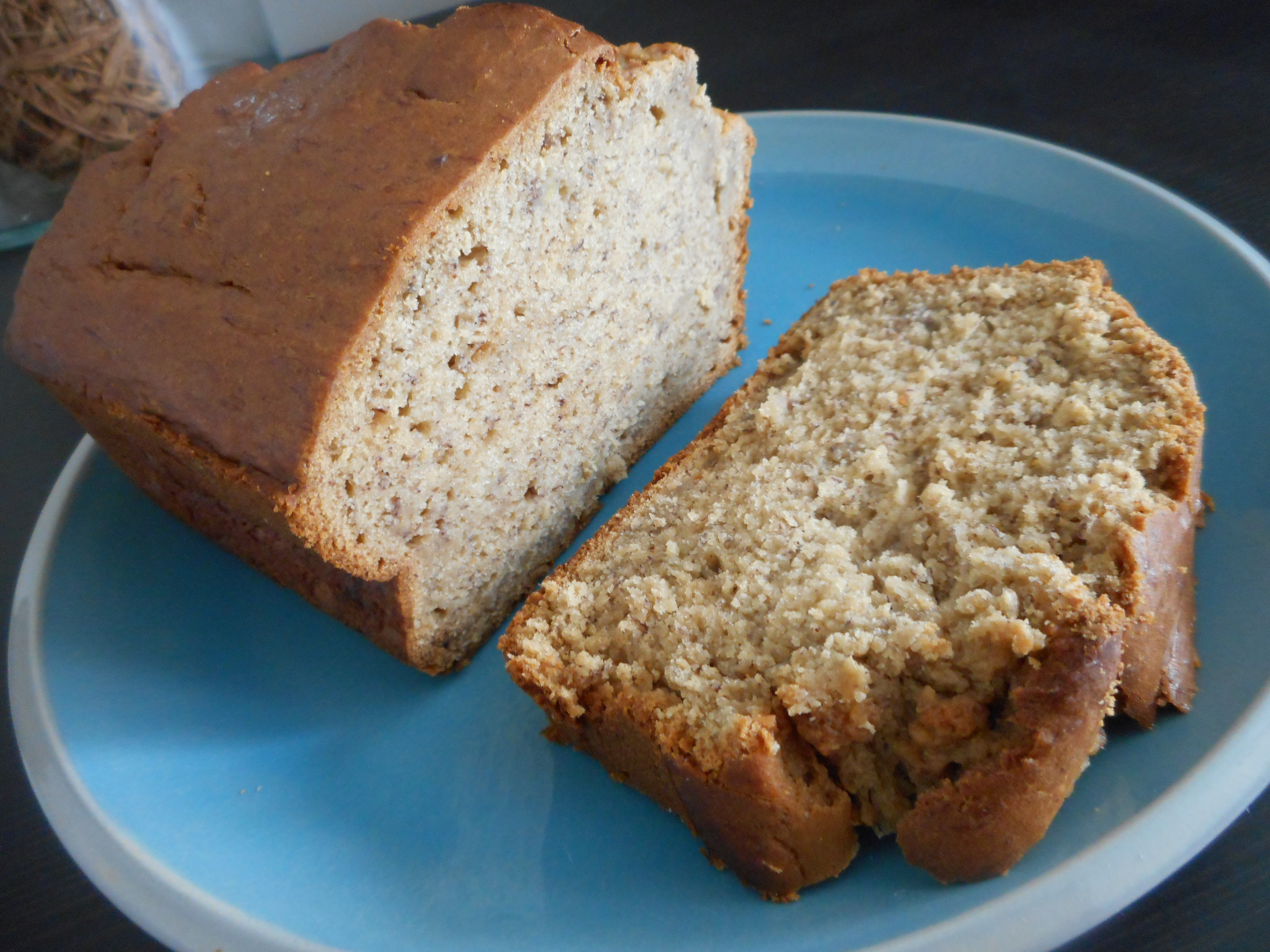 This bread is soft and moist on the inside, with a slight crunch on the top. The banana flavor comes through wonderfully. My changes to the recipe were to halve the sugar (and substitute brown sugar for the white to impart more flavor) and to add cinnamon for a warmer, spicier flavor.